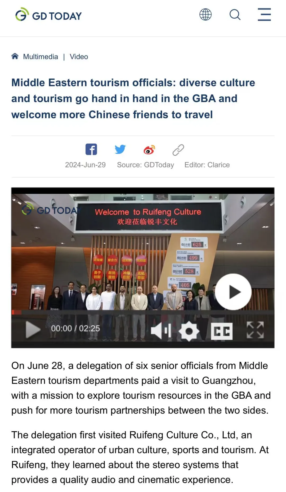 6月28日,應(yīng)外交部駐澳門特別行政區(qū)特派員公署邀請,中東國家旅游部門高級官員代表團訪問廣州。代表團一行共6人,分別來自卡塔爾、科威特、土耳其、阿聯(lián)酋等國家。此次活動旨在落實中阿合作論壇第十屆部長級會議精神,促進中國澳門、廣州、珠海等大灣區(qū)城市與中東國家之間的旅游合作。