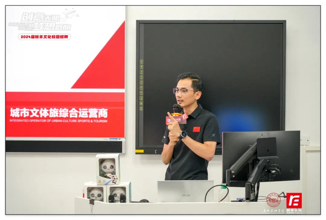 銳豐文化黨支部書記、品牌宣傳部總監(jiān)梁志回顧公司的成長之路,并闡述核心價值觀、發(fā)展理念以及對行業(yè)未來的洞見,分享了成都大運會、廣州國際燈光等重要項目及團隊的運作,獲得了同學們的熱烈反響。