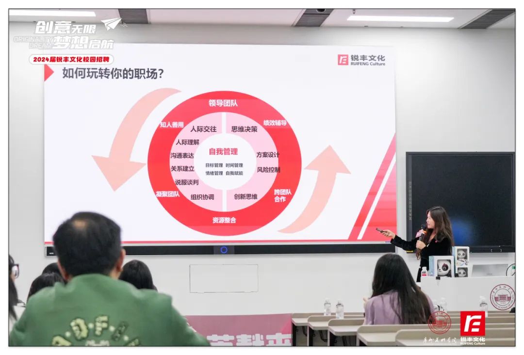 銳豐文化人事行政總監(jiān)王小霞圍繞職業(yè)發(fā)展的路徑規(guī)劃、薪酬福利體系等話題展開,鼓勵同學們將個人特質(zhì)轉(zhuǎn)化為職場上的競爭優(yōu)勢。